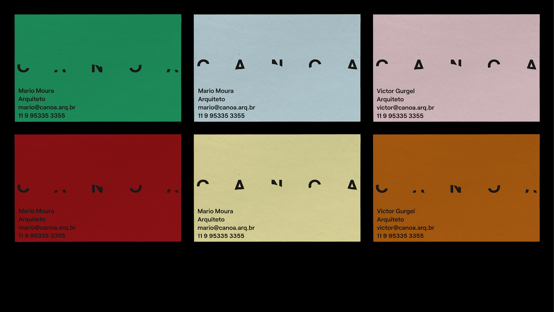 Open spaces and concise functionality are the hallmarks of Canoa Arquitetura, the partnership of architects Mario Moura and Victor Gurgel. Taking their name from the canoe, a true example of keen functionality, the group’s identity system required a similar approach. Floating upon the suggestion of invisible waves, Canoa’s branding is as sharp and minimalist as their constructions.