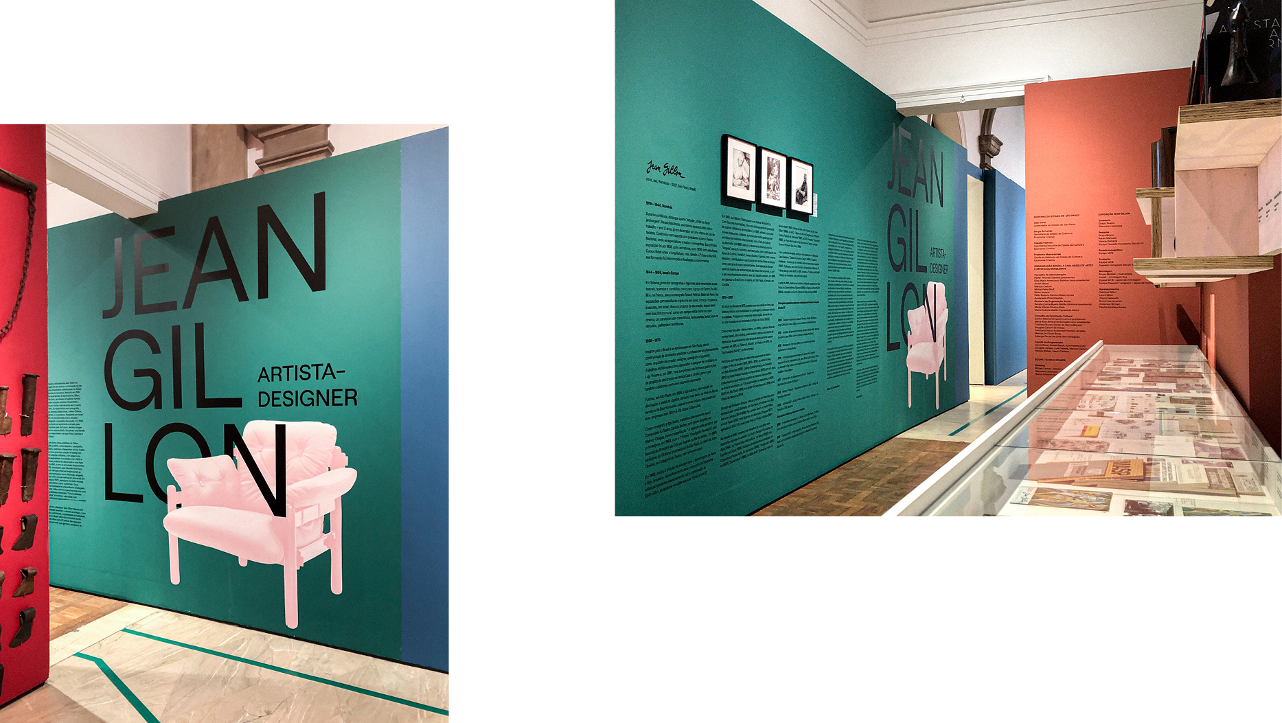 Given the scope and size of Jean Gillon: Artista-Designer, additional exhibition design and outfitting of the Galeria Passado Composto spaces was required on quick turnaround. Gillon’s mid-century artworks and furniture were integrated into small compartmented zones, and an extensive timeline was created to contextualize his productivity across various mediums.